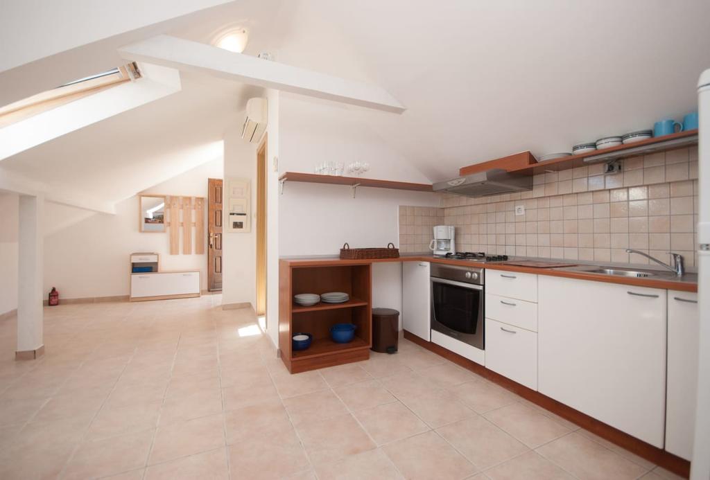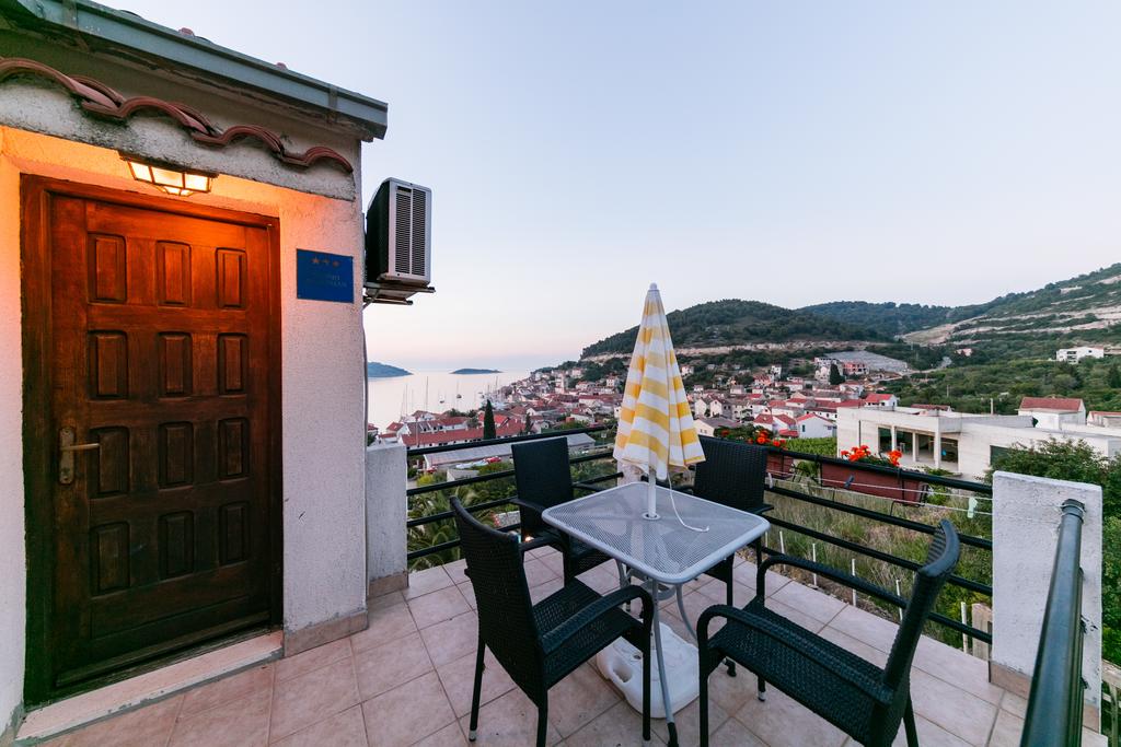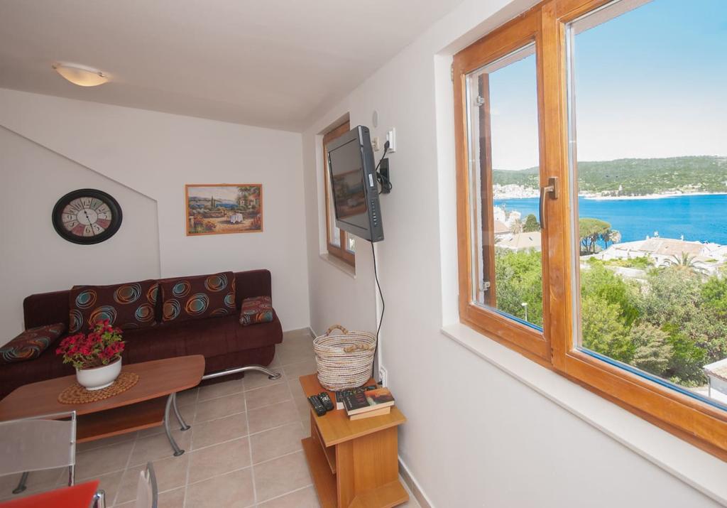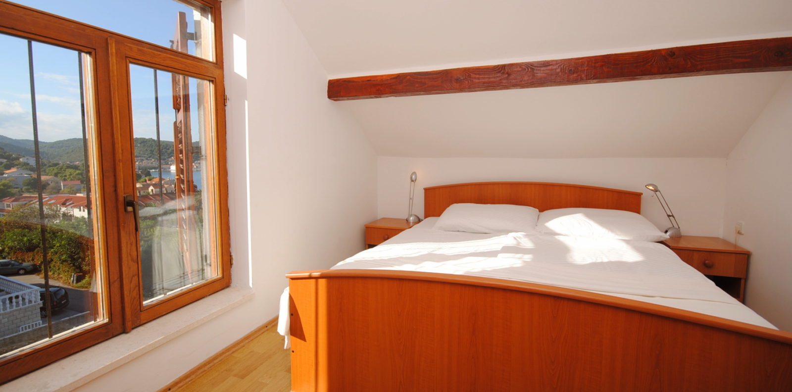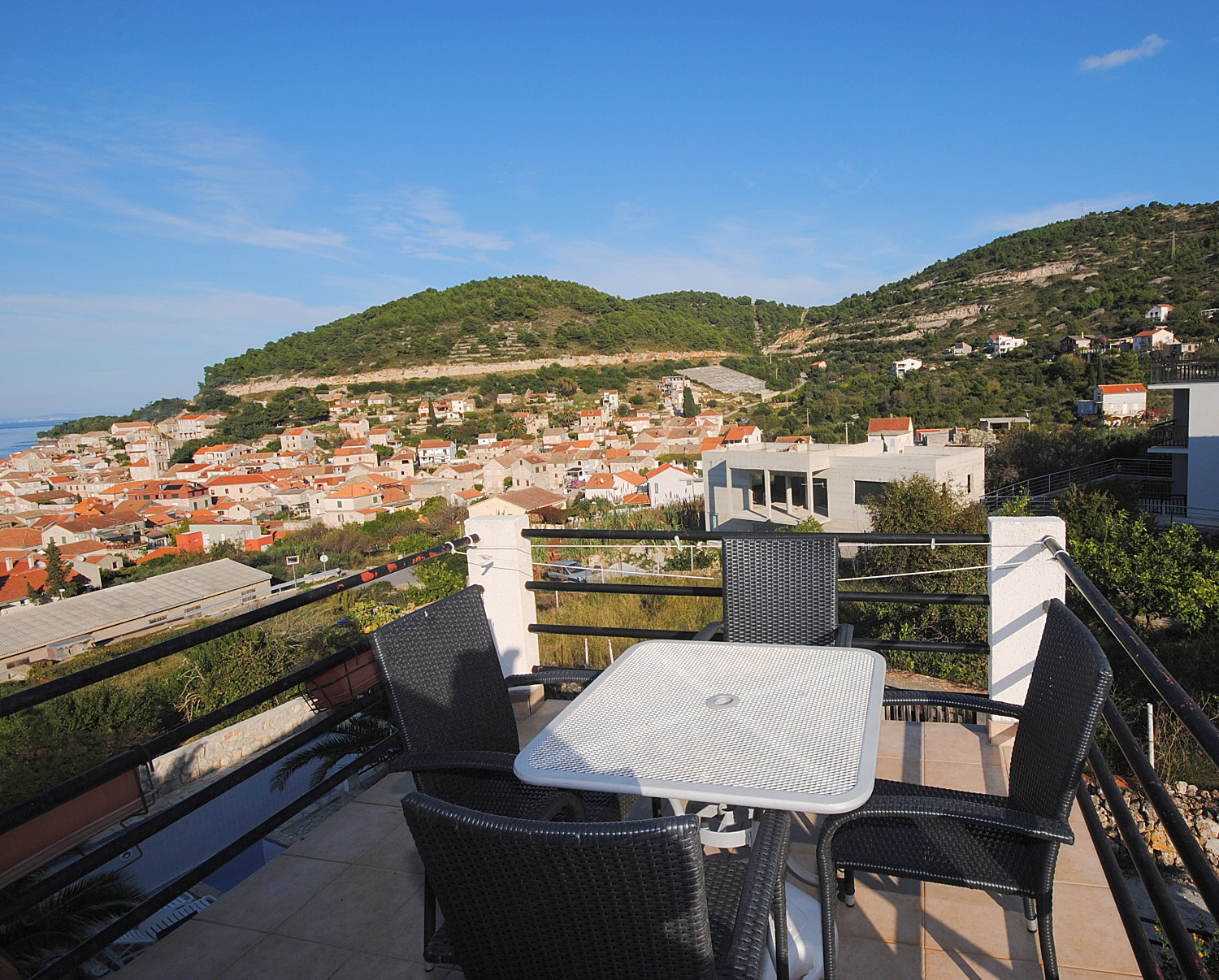 Stan je ima vlastiti ulaz i terasu s prekrasnim pogledom na staru luku Vis. Stan ima dvije spavaće sobe, jednu s bračnim krevetom i jedna s dva odvojena kreveta. Kuhinja i kupaonica potpuno su i moderno opremljeni.