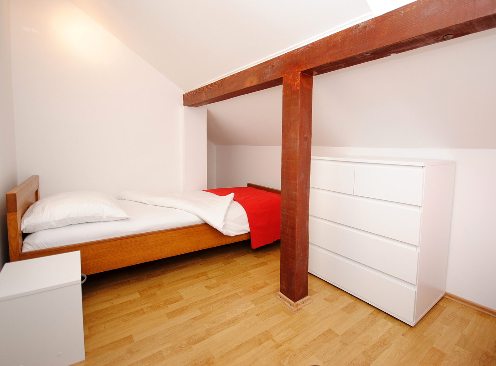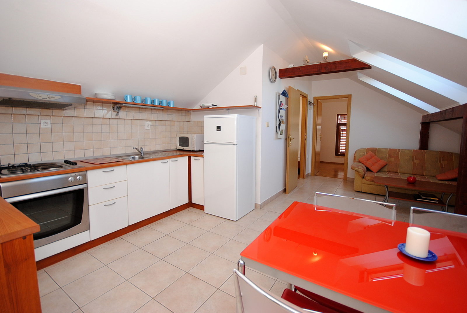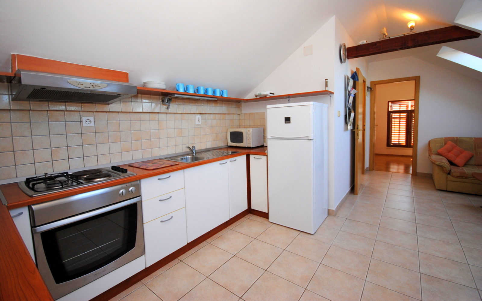 Stan je ima vlastiti ulaz i terasu s prekrasnim pogledom na staru luku Vis. Stan ima dvije spavaće sobe, jednu s bračnim krevetom i jedna s dva odvojena kreveta. Kuhinja i kupaonica potpuno su i moderno opremljeni.