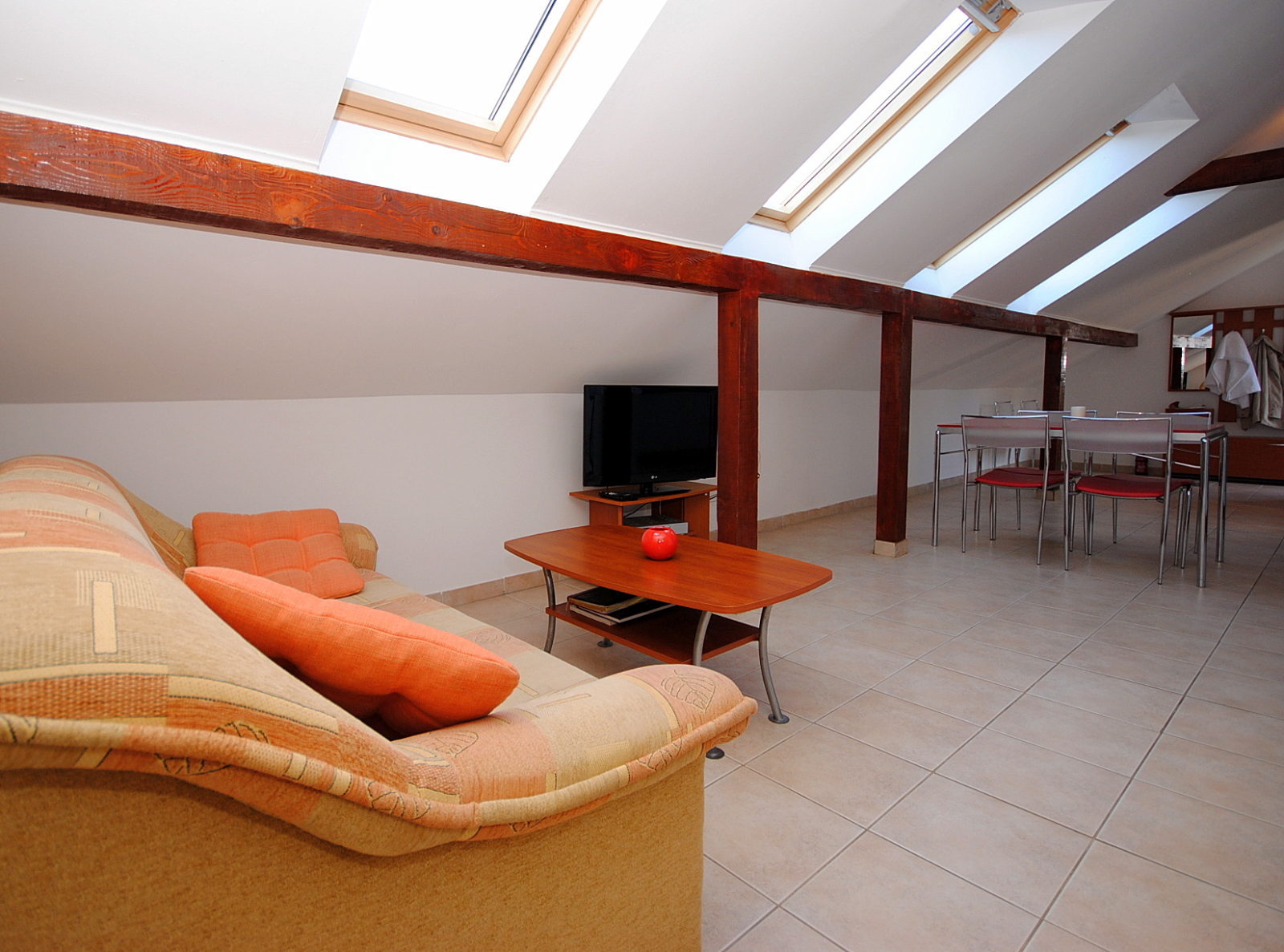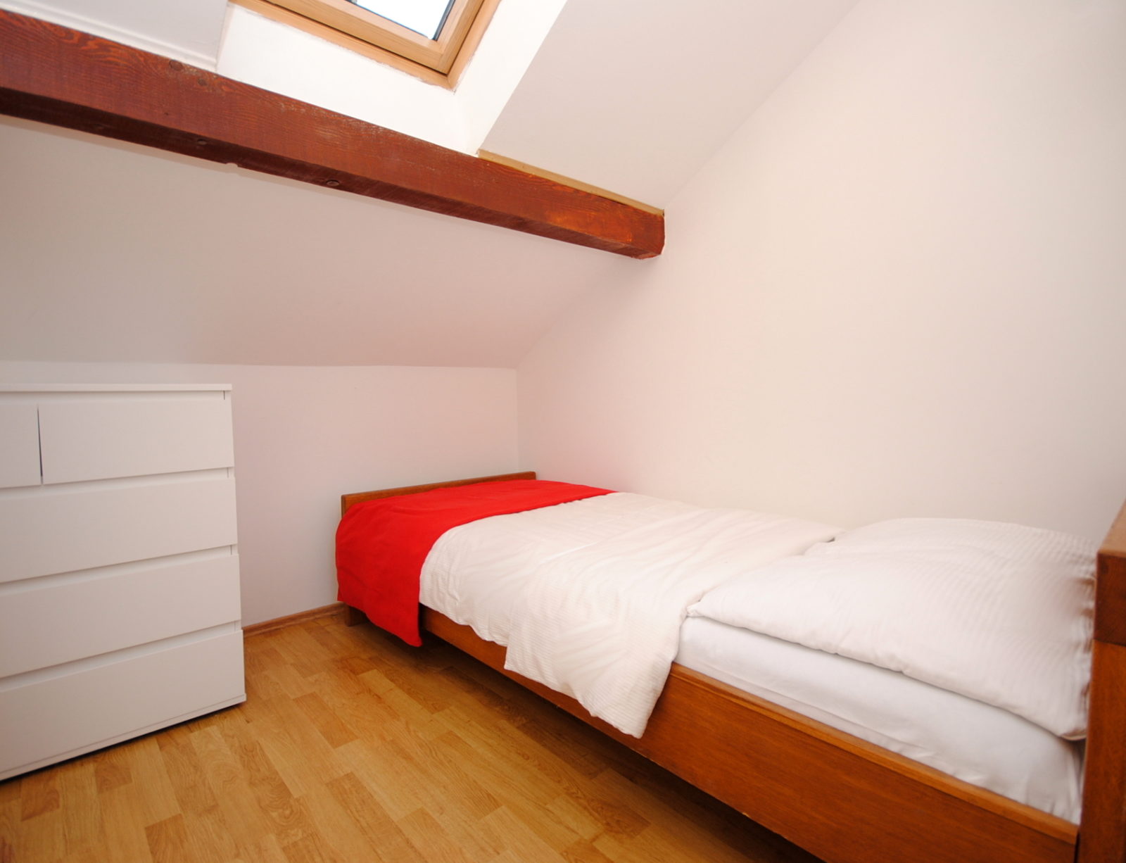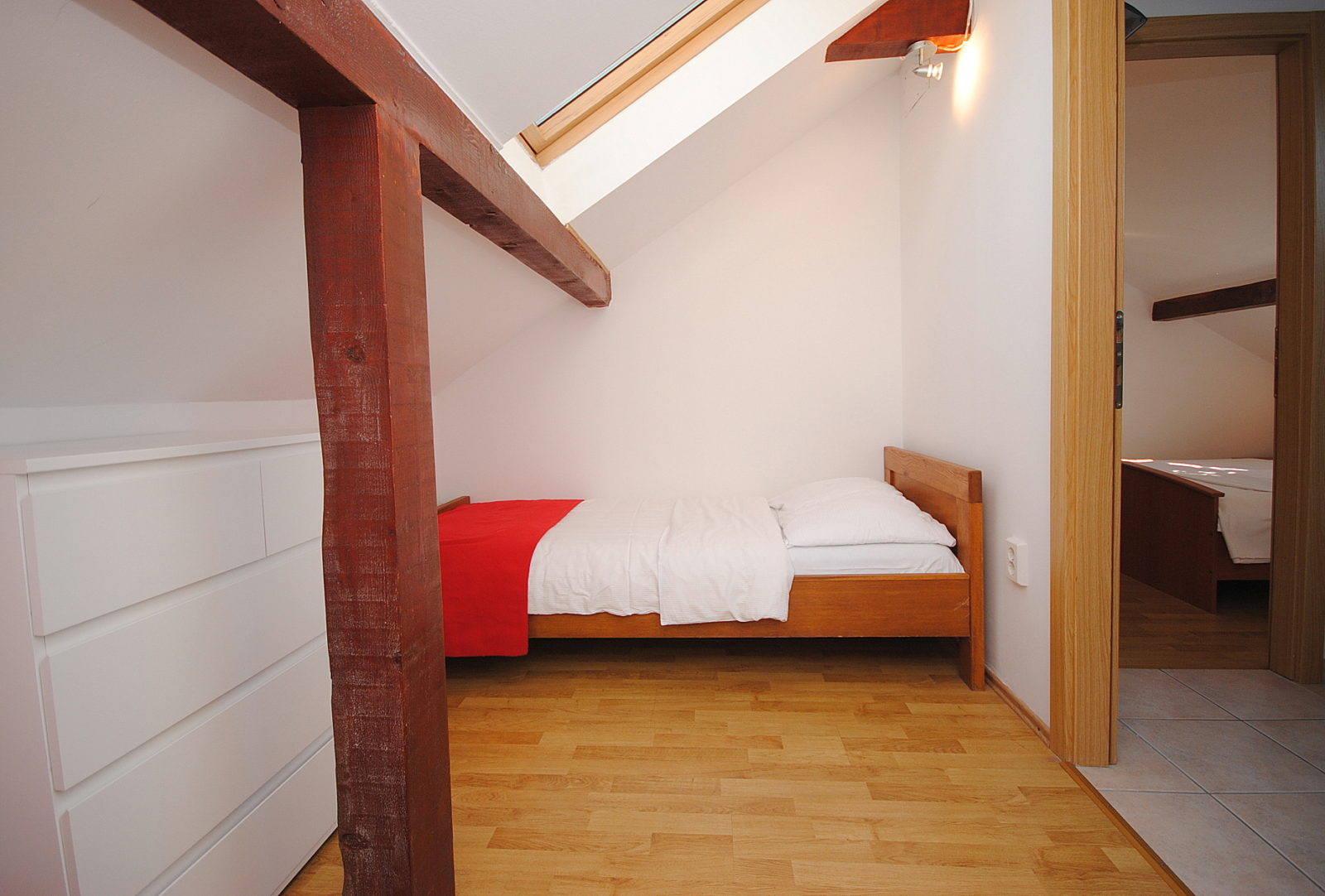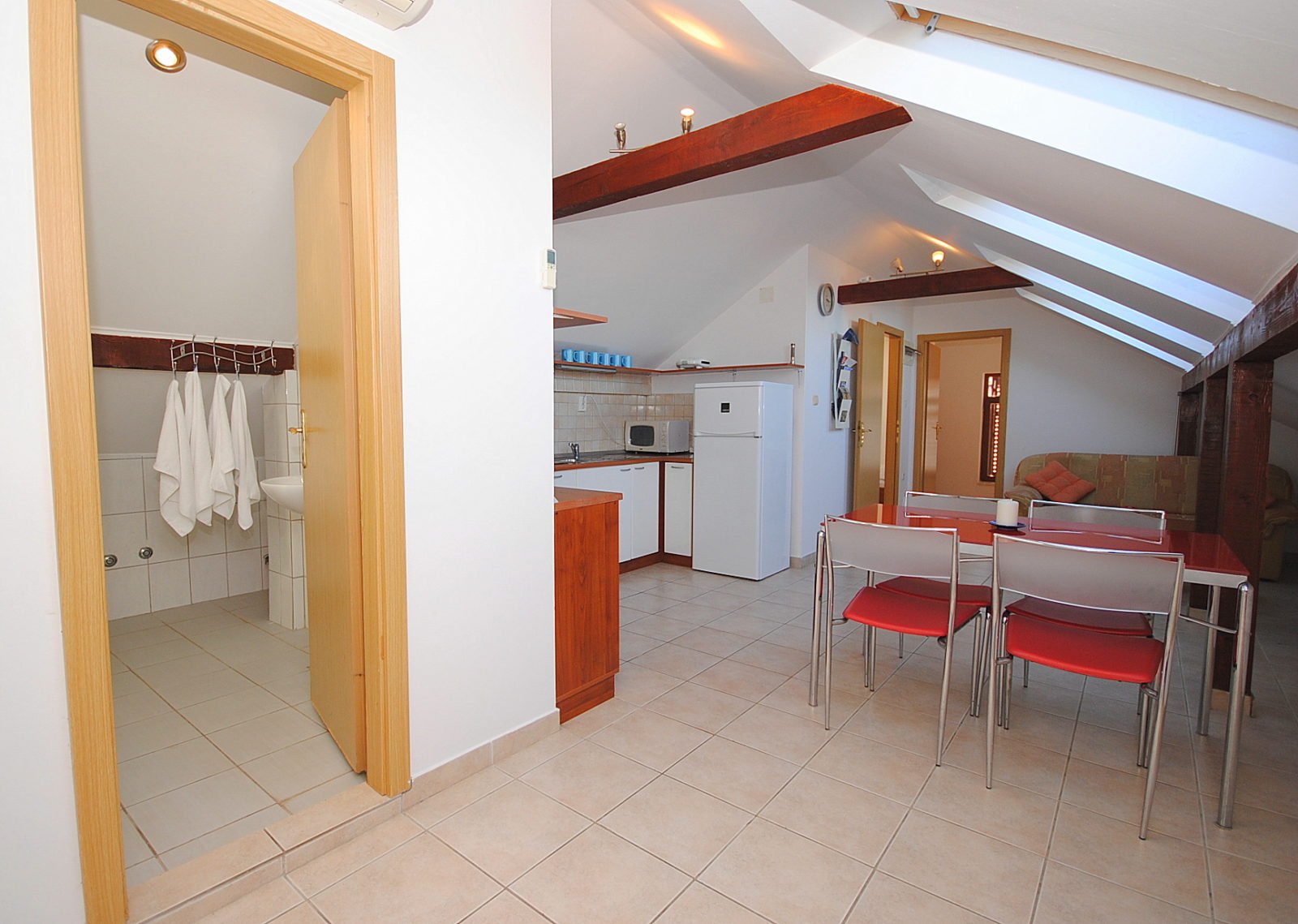 Stan je ima vlastiti ulaz i terasu s prekrasnim pogledom na staru luku Vis. Stan ima dvije spavaće sobe, jednu s bračnim krevetom i jedna s dva odvojena kreveta. Kuhinja i kupaonica potpuno su i moderno opremljeni.