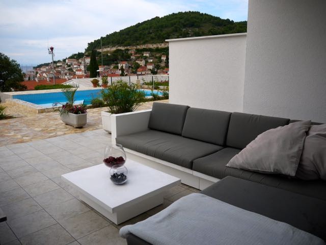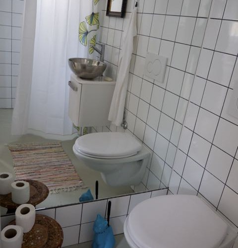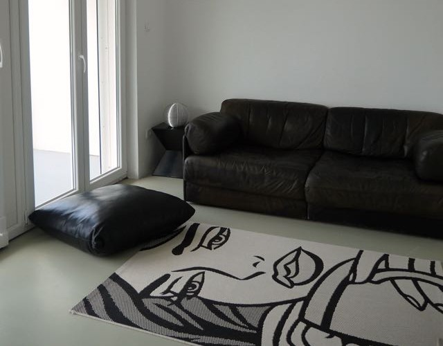 Featuring modern design furniture, this brightly decorated unit comes with two bedrooms, a large kitchen and living room, two bathrooms as well as a swimming pool area. The patio offers a great sea view, as does the master bedroom and the balcony upstairs. The kitchen comes fully equipped with a freezer and microwave, while one of the bathrooms has a laundry machine and floor heating.