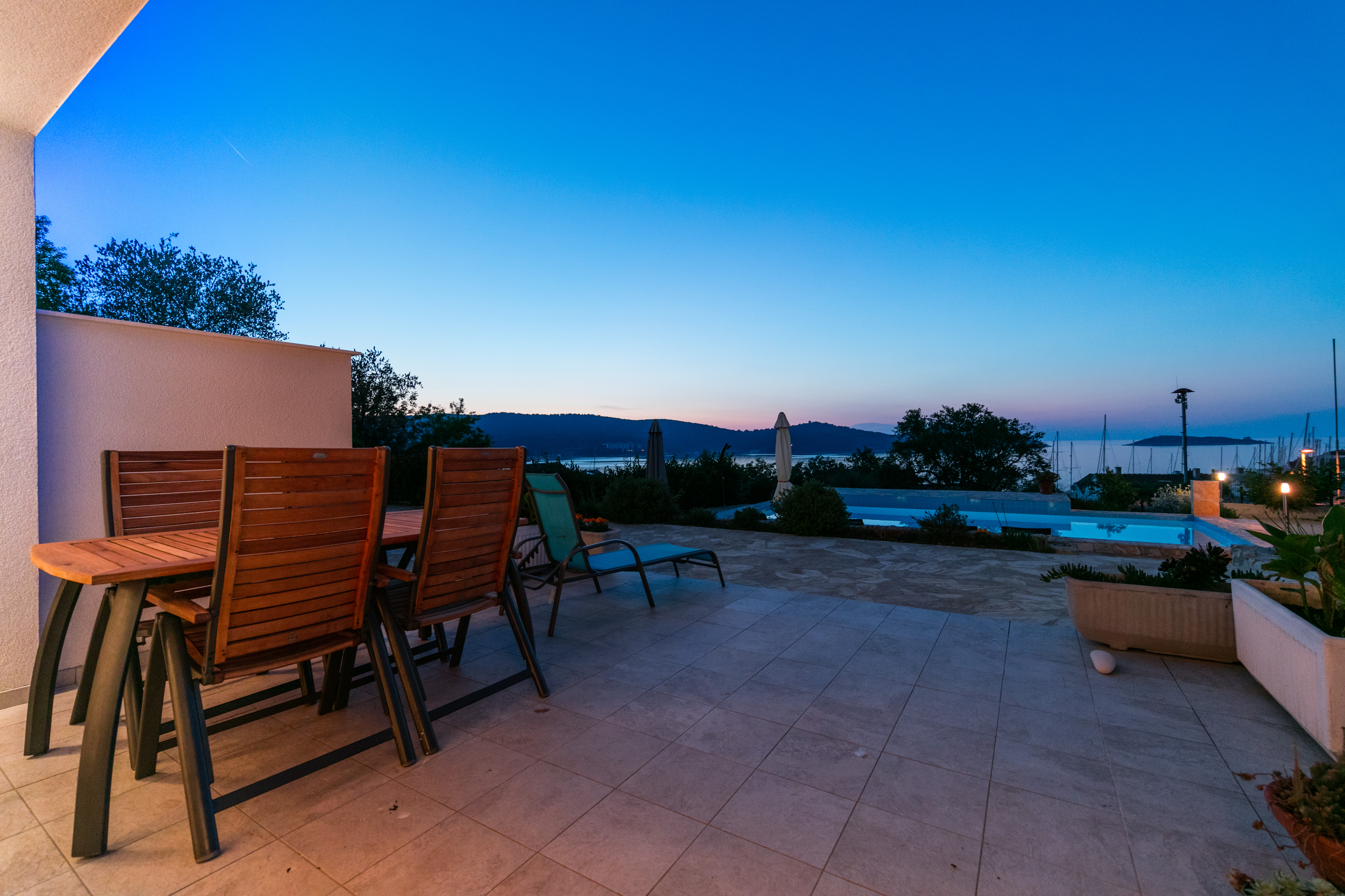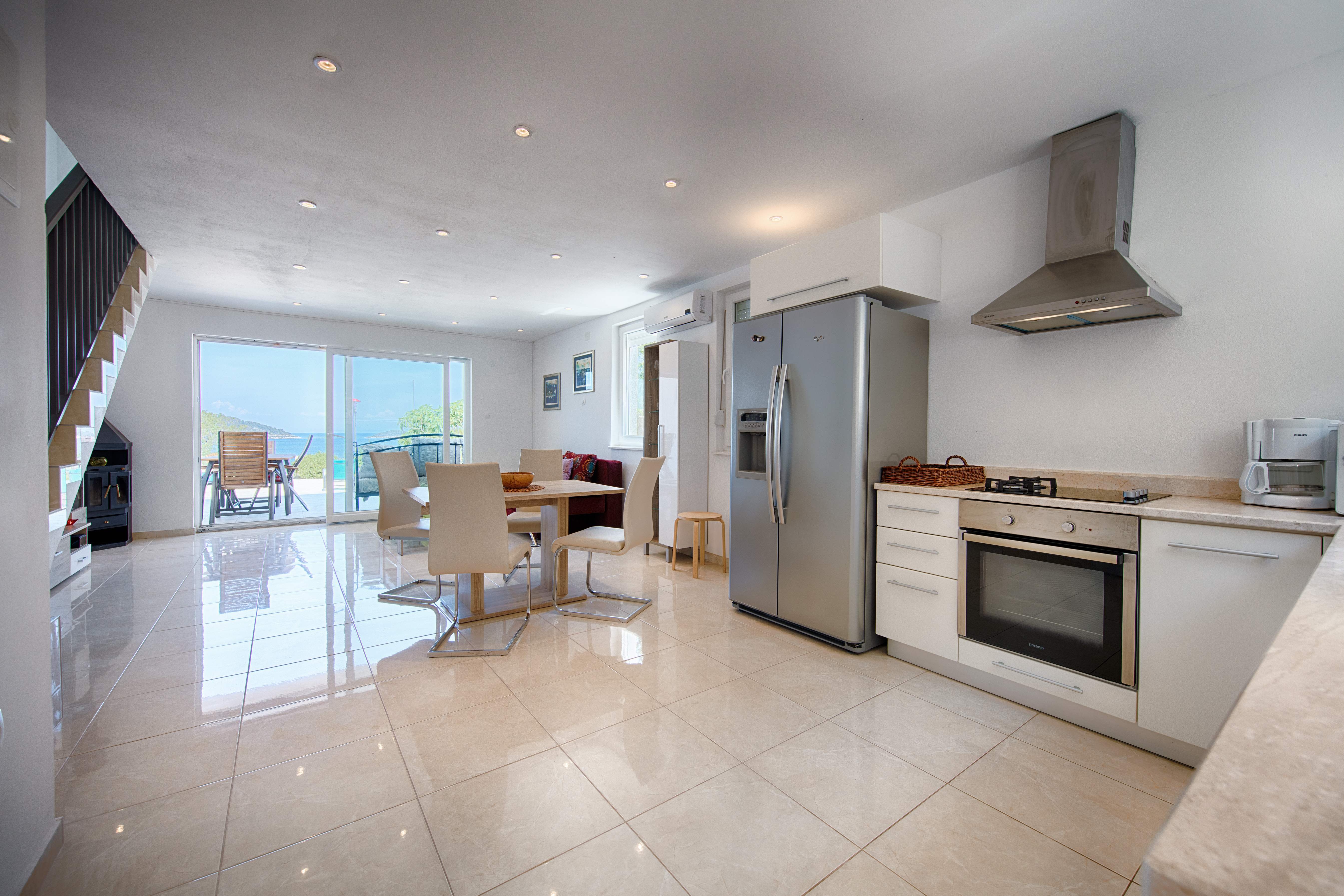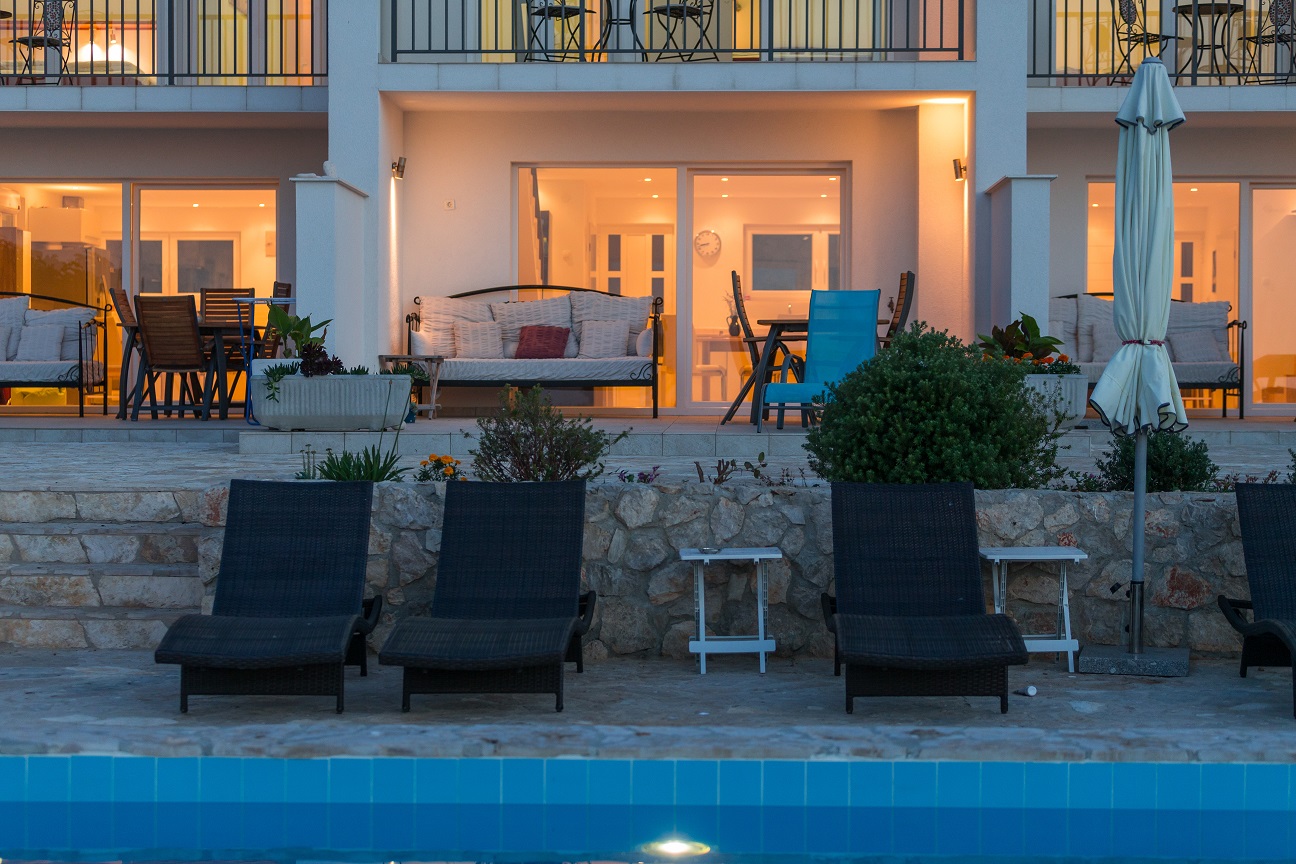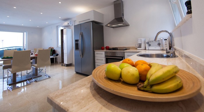 There are three separate brightly decorated units, all equipped with two bedrooms, a large kitchen and living room, two bathrooms as well as a swimming pool. Both the master bedroom, the balcony and patio offer a greate views of the sea. The kitchen comes with a fridge, freezer and microwave, while one of the bathrooms has a laundry machine.